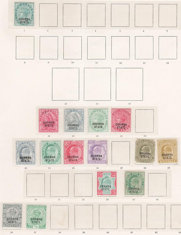 INDIA CONVENTION STATES, ATTRACTIVE MINT COLLECTION ON ALBUM PAGES cv $350, incl. Chamba, Faridkot, Gwalior, Jind and Patiala, fine-very fine, cat. $350.00
