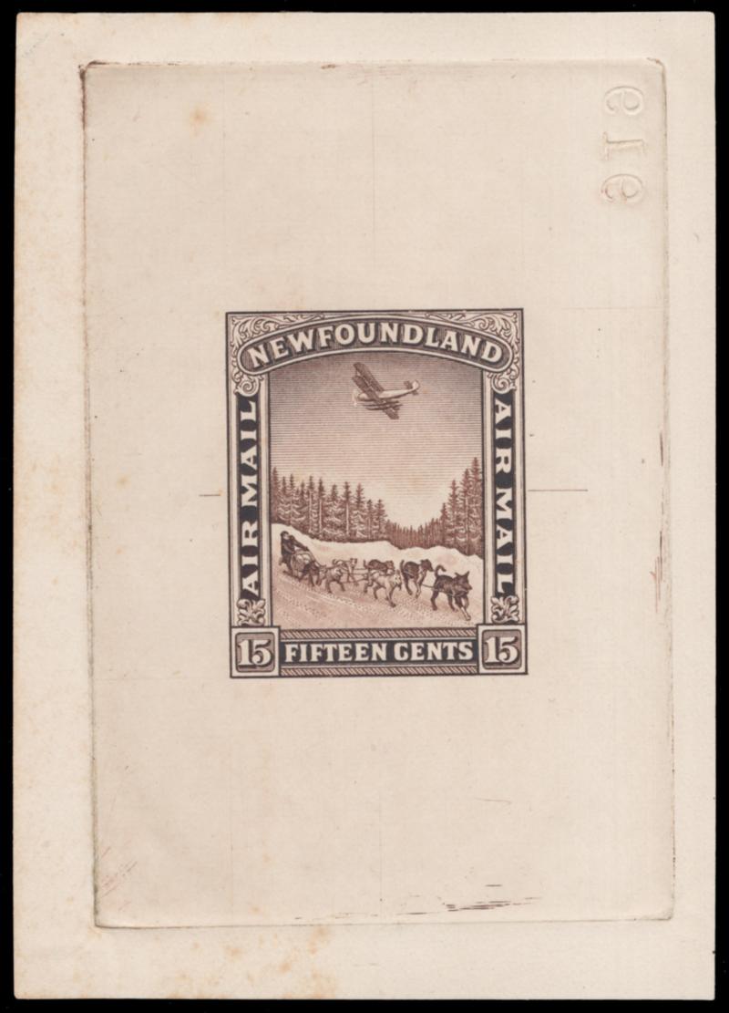 NEWFOUNDLAND, 1931, 15c BROWN DIE PROOF, #C6P/C9P, die sunk on proof paper, 67x94mm, reversed embossed "919" at top right, slight traces of toning, very fine and scarce