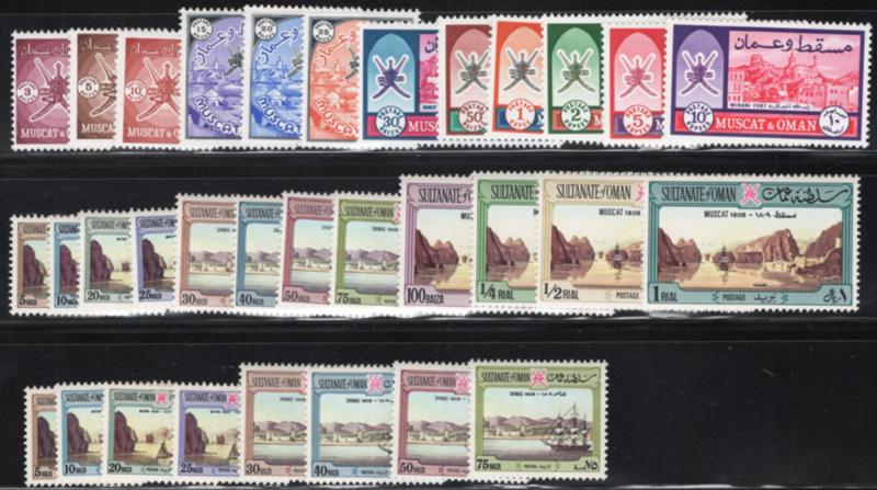 OMAN, 1966-75 MINT NEVER HINGED SETS, #94-105, 139-50, 139A-146a, fresh, fine-very fine, cat. $380.00