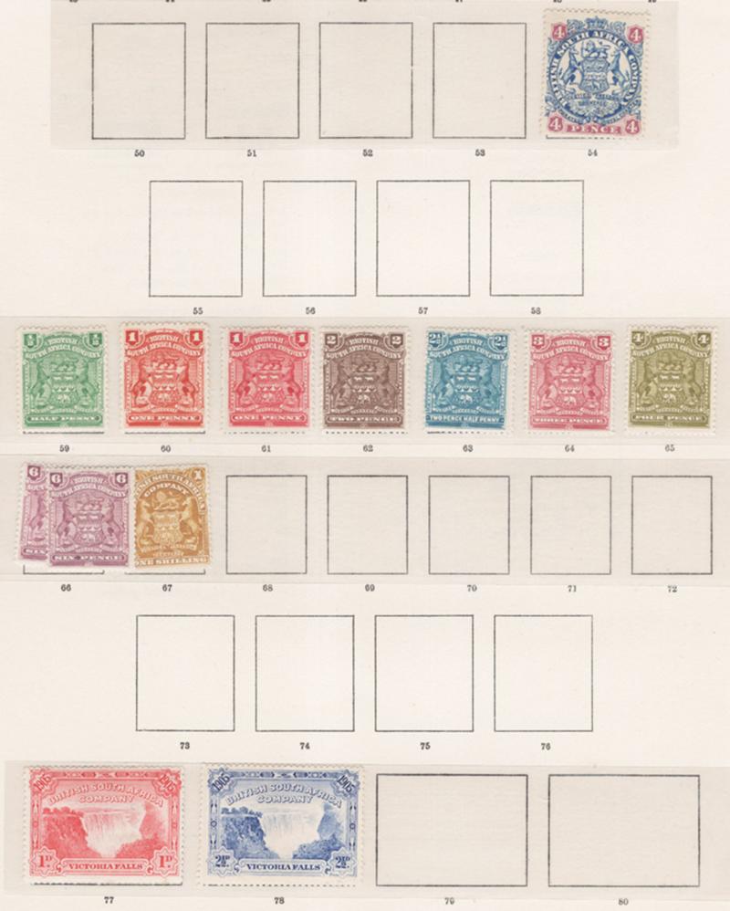 RHODESIA & SOUTHERN RHODESIA MINT COLLECTION BALANCE ON ALBUM PAGES cv $1,000, incl. e.g. nos. 59-66*, 104-08*, fine-very fine throughout, cat. $1,000.00