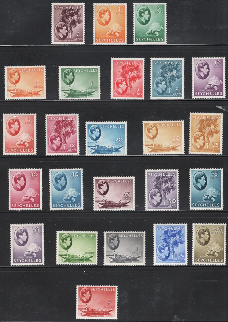 SEYCHELLES, 1938-41, 2c-5r GEORGE VI MINT, #125a//148, complete set of 16, lightly hinged, fine-very fine, cat. $393.75