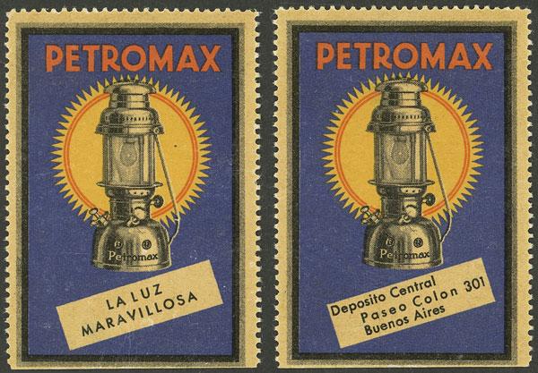 2 Old advertising cinderellas with different inscriptions of "PETROMAX", small thins on back (Image)