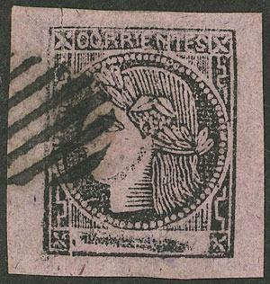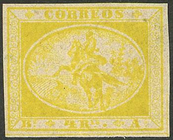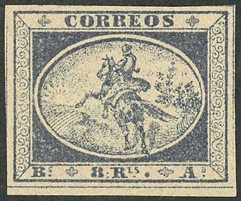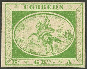 GJ.2, 6 Reales, with "CORR'EOS" variety (the top left part of the "E" is interrupted, resembling an accent), in very brigh color and extremely fresh gum, absolutely superb (Image)