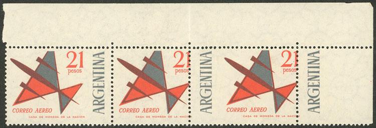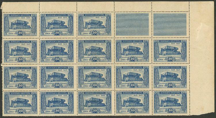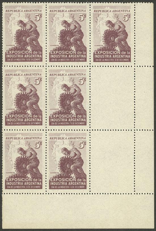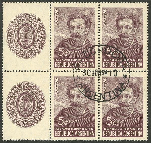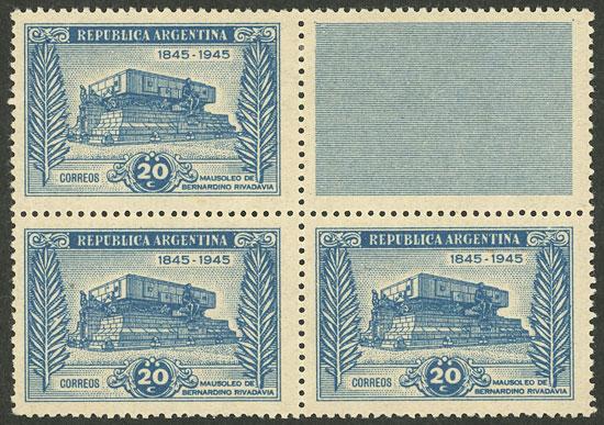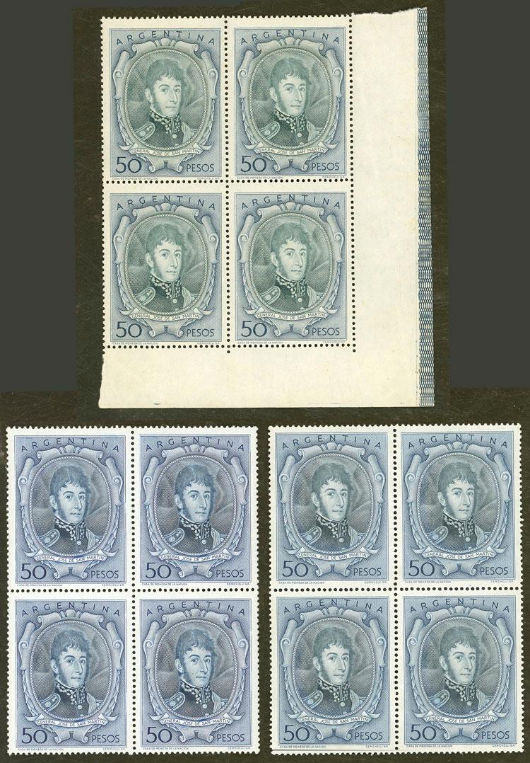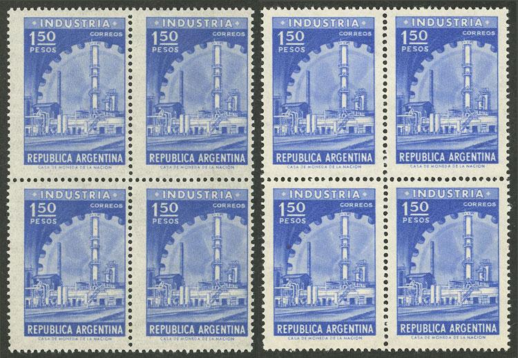 GJ.1046, 2 blocks of 4 printed on Zárate national unsurfaced paper + pelure paper (scarce) (Image)