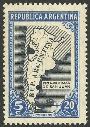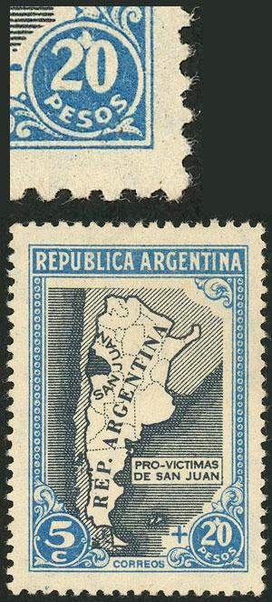 GJ.915, 5c+$20 Map of Argentina, blue and slate gray, high value of the set, VF (Image)