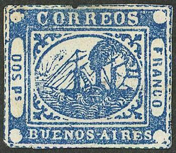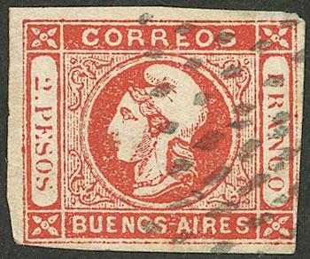 GJ.18, 2P. red, with dotted cancel of Buenos Aires, small thin on back, very good front (Image)