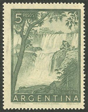 GJ.1053ASG, $5 Iguazú falls, PRINTED ON GUM, superb (Image)