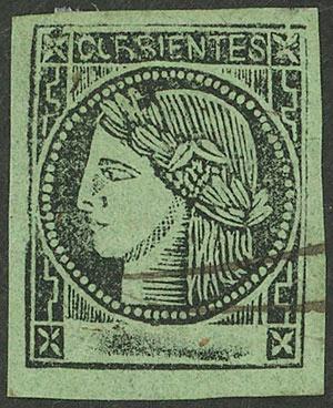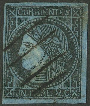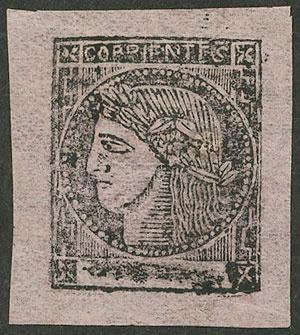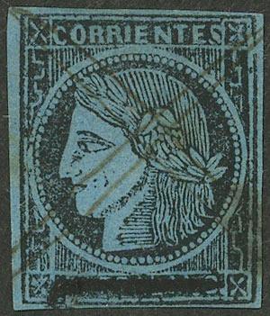 GJ.8, 3c. dull rose, type 1, with 9-bar cancel of Corrientes, with a tear at top, superb appearance! (Image)