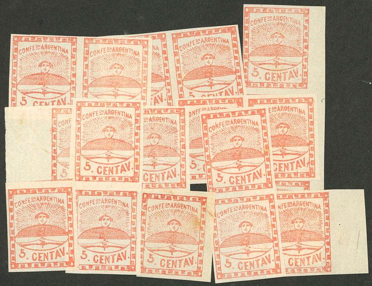 GJ.1, 5c. small figures, 18 stamps, perfect to look for the different types (Image)