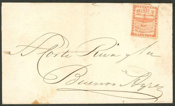 GJ.1, 5c. small figures, franking a folded cover sent from Paraná to B.Aires, uncancelled, VF quality (Image)