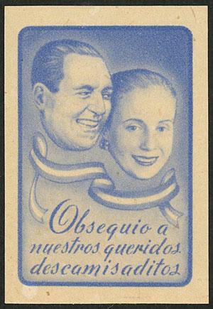 Proof of a cinderella with the faces of Eva and Juan Perón, in light blue (Image)