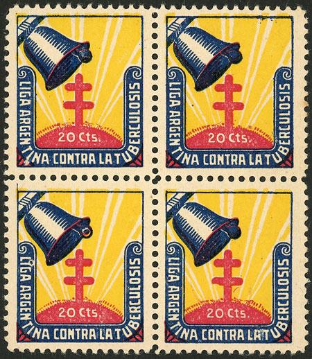Block of 4 of 20c. cinderella of the Argentine League against Tuberculosis of year 1928, rare (Image)