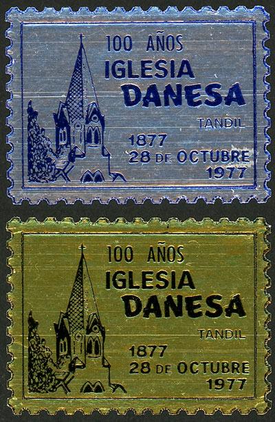2 Cinderellas in different colors commemorating 100th anniversary of the Danish Church in Tandil, 28 October 1977 (Image)