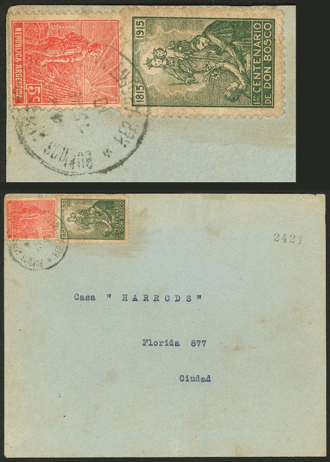 Cinderella of the 1st Centenary of John Bosco, on a cover used in Buenos Aires in 1916 (Image)