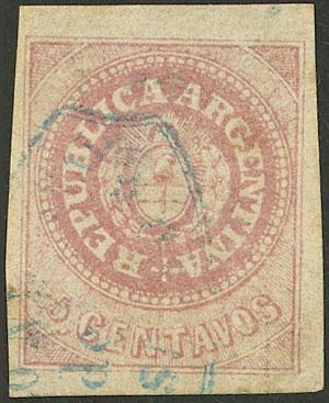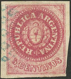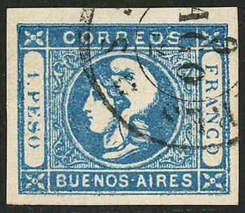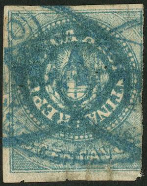 GJ.17, 1P. blue, with datestamp of Buenos Aires 9/AU/1862, superb (Image)