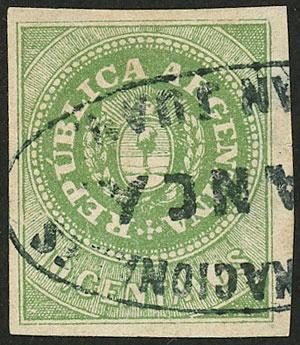 GJ.21, 1P. rose, with VARIETY: "BUE OS" due to printing flaw, used in Buenos Aires on 5/JA/1863, thin, GOOD FRONT! (Image)