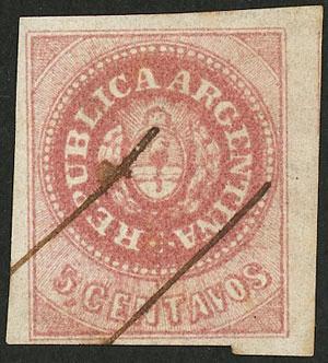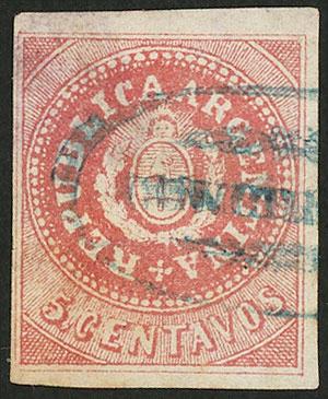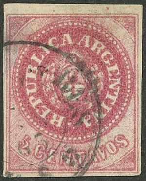 GJ.13, 3c. dull rose, with double circle datestamp of Corrientes SE/1877, minor defect (Image)