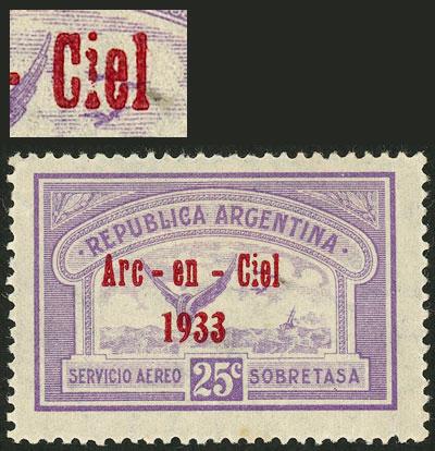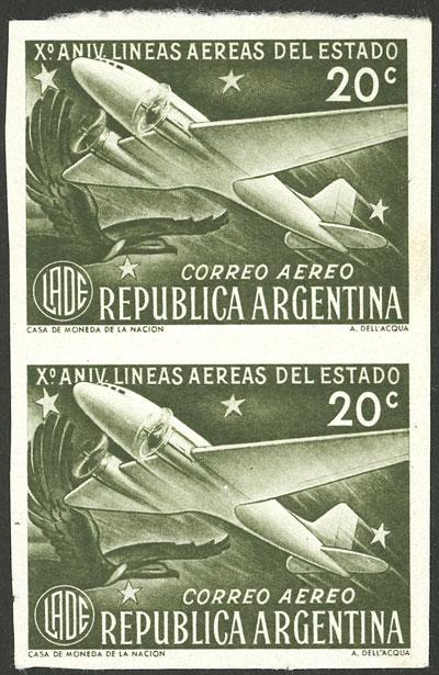 Complete sheet (broken in 2) of 10 cinderellas of "Centro Filatélico de Salta", light stain spots (Image)