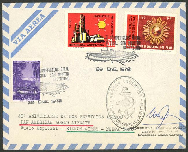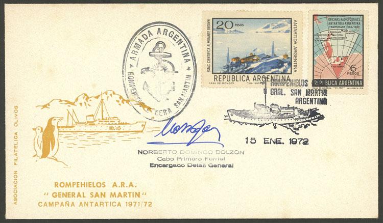 Cover of JA/1972 signed by officer of icebreaker Gral. San Martín, with nice handstamps of the ship (Image)