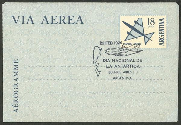 $18 Aerogram with handstamp "22 de Febrero de 1974 - Día Nacional de la Antártida" (Image)