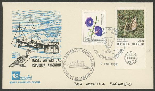 Cover sent from Marambio Antarctic base to B.Aires on 5/JA/1987, with handstamp "Correspondencia Recibida de la Antártida" (Image)