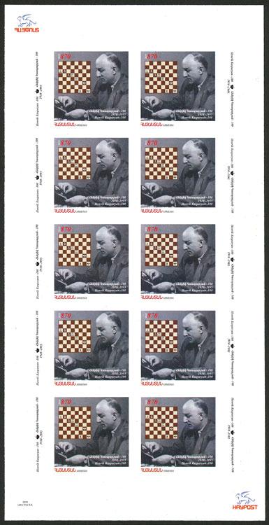 Sc.839, 2010 Henrik Kasparyan, CHESS, sheet of 10 IMPERFORATE values, MNH, very rare! (Image)
