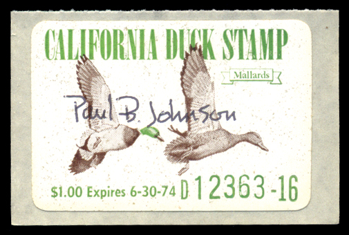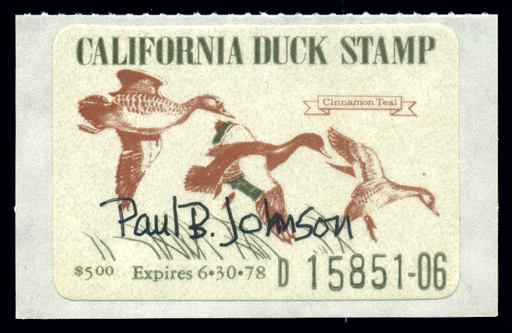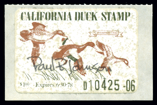 CA7A(s), California 1977 Cinnamon Teal, sba Paul B. Johnson (deceased), VF NH, on backing paper Cat($40) (Image)