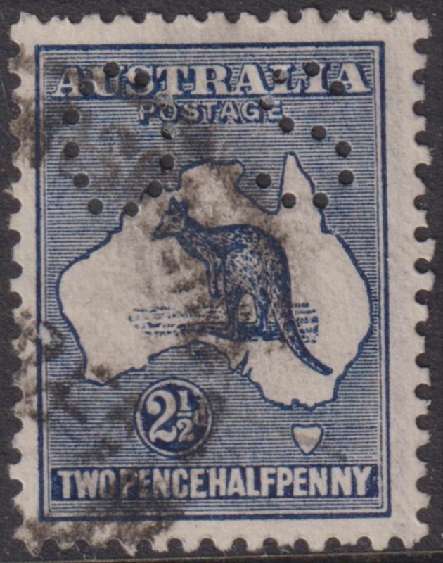 1915 2½d Roo deep blue, Die II, narrow crown over A wmk, small ''OS'' puncture. SG O44. Cat £38. GU. (Image)