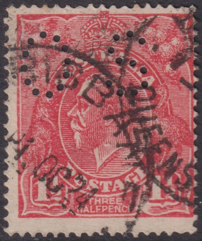 1924 1½d GV scarlet, no wmk, small "OS" puncture. SG O87. Cat £90. GU. (Image)