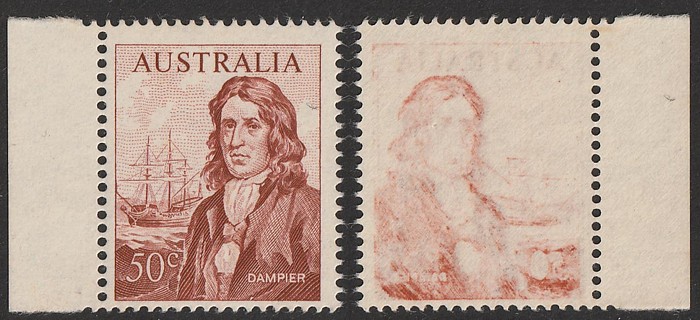 1966 Navigator 50c Dampier variety 'reverse off-set' left marginal. Fresh MNH. SG 399(var). ACSC 461 c cat $375. (Image1)
