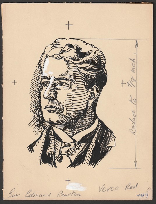 1969 Prime Ministers 4 Artist Essays in pen & ink (130x170mm) for Barton, Deakin, Reid & Watson. A unique set. VF. (Image1)