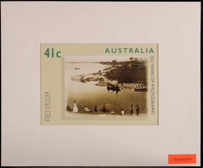 1991 Photography Anniv 41c 'Bondi' design by Max Dupain. Unissued value & marked 'unadopted', though similar to issued 43c stamp with same photo. Sunken mounted 155x225mm. Whole presentation folder 315x400mm. With copy of list of reasons for rejection. F-VF. SG 1291(e). ACSC 1518(e). Unique. (Image1)