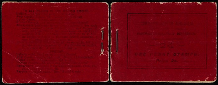 1917-18 KGV 2/- booklet with full contents of KGV single wmk 1d rose (G21) 'ACSC7K) in 2 blks of 12 folded in half. Cover very deep red glazed stock - buff inside with correct New Hebrides 1d rate, yellowish interleaves. F-VF MNH, restapled so contents maybe replacements. SG SB4 cat £3500, ACSC B12Aa cat $5000 & under-catalogued relative to others. Extremely rare early booklet. 2024 Ceremuga AIEP photo-cert. (P) (Image1)