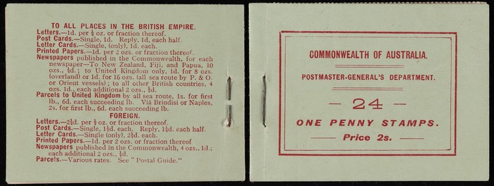 1917-18 KGV 2/- booklet with part contents of KGV single wmk 1d carmine (G30) ACSC 71V blk of 6, & blk of 12 folded in half. Cover red on pale green, white inside, with correct New Hebrides 1d rate, yellowish interleaves. VF MNH. SG SB 4B cat £3750. ACSC B12d cat $6000. Very rare early booklet. 2024 Ceremuga AIEP photo- cert. (Image1)