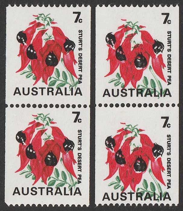 1971 Floral Coil 7c with variety 'MISSING Buff (details on red flower petals) & misplaced green.' VF fresh MNH with normal for comparison. SG 468bb cat £450. ACSC 535ce cat $300. (Image1)