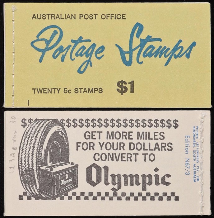 1968 Flowers 15c Blue Gum sheet of 100 with Autotrons at left, both black sheet numbers (Pos 5/6) & varieties 'green dot left of NI of Tasmania' (Pos UP1/5) & 'retouch in brown left of flower' (UP1/7). Fresh MNH. SG 422(var). ACSC 485 d e z ze zf cat $300. (Image1)
