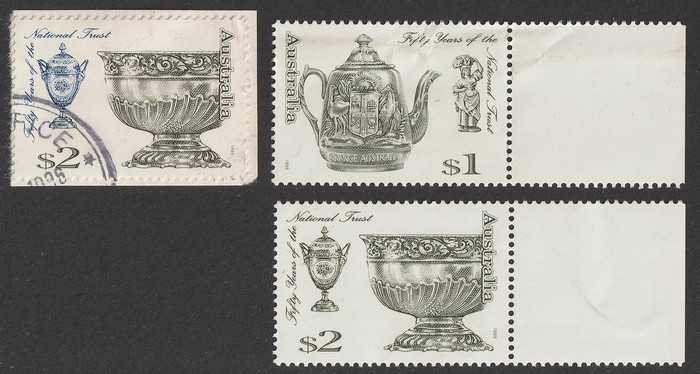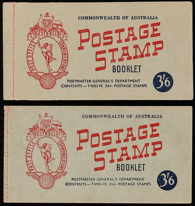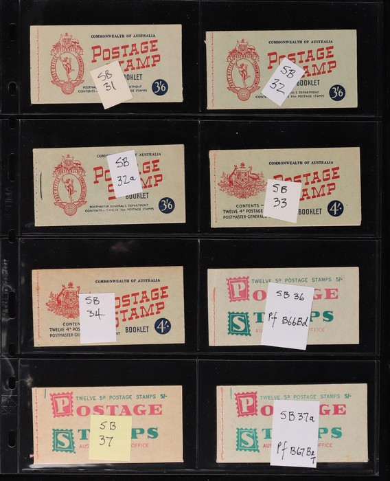 1953-73 collection with 3/6 with & w/o wmk, plus wax stapled no wmk, 4/- 4d lake & carmine, new colours covers 5c blue, green (2 inc wax), 1966 4c red, 5c/4c temporary 50c covers (6), $1 temp, 5c/4c permanent covers (7), 5d blue, 50c & $1, 1968 Famous Aust (2), 1969 PMs (3), 1970 FA (2 of ea) & 1973 PMs both 70c & $1 (2). Mostly VF, identification by vendor & unchecked. SG cat £950. Pfr cat $2000+. (38) (Image1)