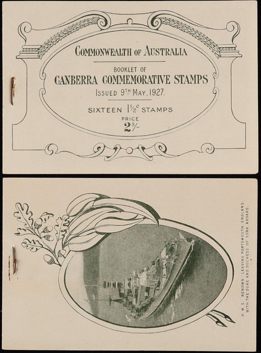 1927 Canberra 2/- booklet with 2 panes of 1½d. Fresh clean cover, much nicer than normally seen. ACSC/Pfr B38 cat $125/$150. SG SB22 cat £90. (Image1)