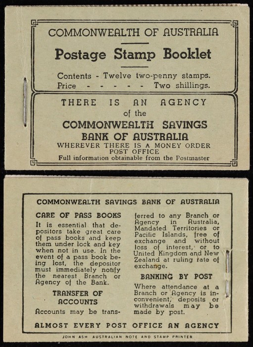 1932 KGV 2/- with 2d red Die III CofA wmk inverted, with 2 panes. Back cover with 'USE THE AIRMAIL'. Superb fresh MNH. ACSC/Pfr B42a cat $500/$900. SG SB25a cat £425. Scarce so nice. (P) (Image1)