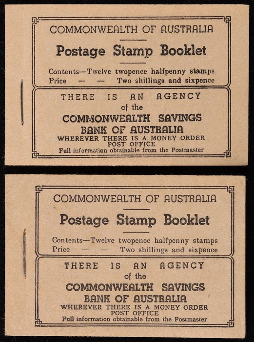 1942-49 KGVI 2/6 with 2½d panes, plus same with wax interleaves. 1st superb fresh MNH, 2nd MNH stamps evenly tropicalised but still fresh appearance. SG SB28 & SB28a cat £360. CSC/Pfr B53 & B54 cat $680/$650. (2) (P) (Image1)