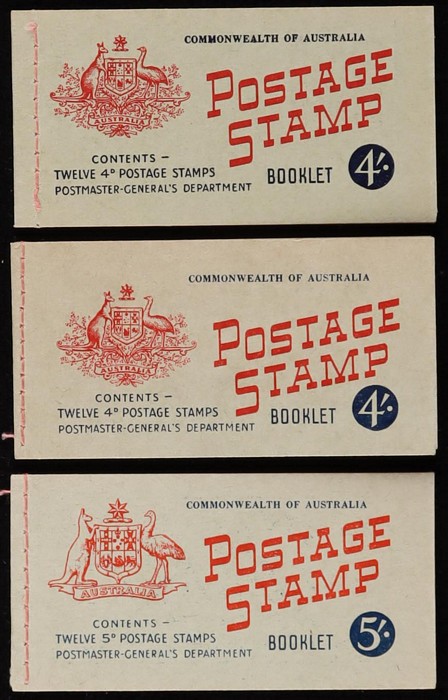 1957-60 QEII 4/- with 4d lake panes & 4d carmine, plus 5/- with 5d blue, all with wax interleaves. VF fresh MNH. SG SB33a, SB34a & SB35A cat £195. Pfr B60AT, B60BT & B61T cat $570. (3) (Image1)