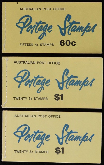 1966-67 QEII 60c with 4c red Helicon ink, 'Use Postal Orders' tabs, Ed DS9, no text inserts, plus 5c/4c '9x4' tabs permanent cover & 5c blue, all with wax interleaves. SG SB39a, SB41ab & SB43a cat £270. Pfr B81CT, B124CfT & B127Cdt cat $580. (3) (Image1)