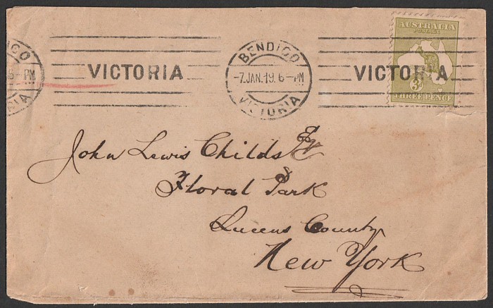 Covers: 1913-48 1d to 2/- on cover inc 1914 1d red Die II with variety 'flaw inner frame opposite One' (ACSC 3(E)e), 1918 3d olive Die II with Private Perfin, 1915 4d orange large OS on cover to Perth, 1946-48 (3) covers to USA with 2/- maroon redrawn die, one deep to intense deep maroon. Generally F-VF. ACSC est cat $1800. (13 covers) (Image1)