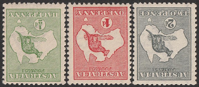 ½d Green, 1d Red (Die Ii) & 2d grey. All INVERTED wmk. F-VF MNH. SG 1bw, 2dw, 3w cat £350M. ACSC cat $1325. Ex Sandy. (3). (P) (Image1)
