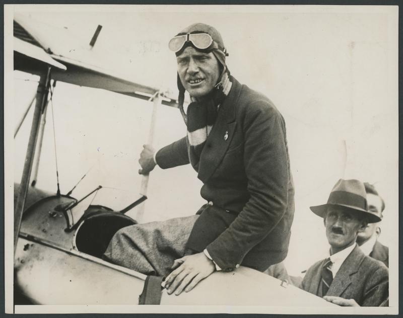 1934 MacRobertson Air Race file of newspaper extracts about the race, large fold-out page (400x293mm; very fine), large press photos of Charles Kingsford Smith with 'Lady Southern Cross' (which failed to start in the race) & a marvellous shot of spectators watching the planes depart from Mildenhall (very fine), others related to the racers but not the race including 'Smithy' after arrival at Sydney in -.11.1933, Arthur Clouston arriving from his record-breaking return flight after the race, CWA Scott & Giles Guthrie after winning the 1936 England-Africa Air Race and Clive Pangborn after winning the 1931 Ligue Internationales Aviateurs Trophy, etc, condition variable but most are fine to very fine. A fascinating archive.