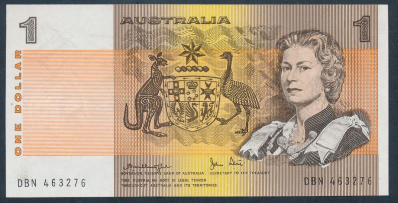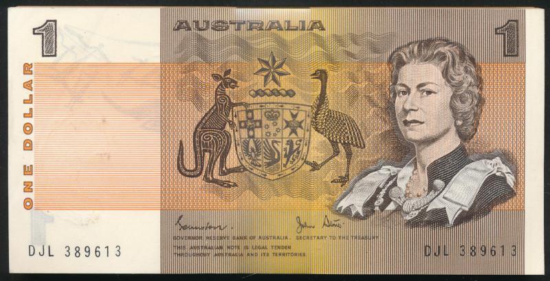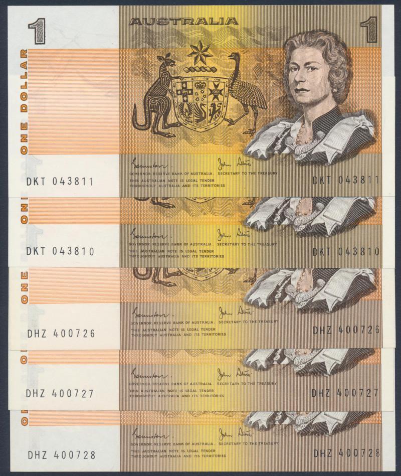 1979 $1 Knight/Stone R77 consecutive run of 100, serials 'DBN 463276'-'375' includes RADAR '463364', Uncirculated, Cat $1800.