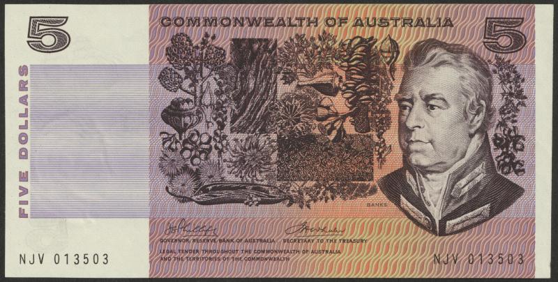 Group comprising $1 Johnston/Stone (5); $2 Phillips/Wheeler 'AUSTRALIA' R85 pair; $5 1967 Coombs/Randall R202 x2 (one with staple holes), 1972 Phillips/Wheeler 'COMMONWEALTH' R204, 1983 Johnston/Stone R208 pair, 1992 First Polymer/Last Paper folder; $10 1988 Bicentenary folder, plus R310b Reissue run of four; condition variable.