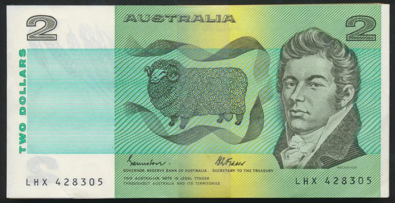 1985 $2 Johnston/Fraser R89 banded consecutive run of 100 serials 'LHX 428305'-'404, Uncirculated, Cat $1200. (Image1)