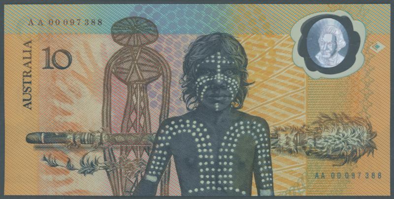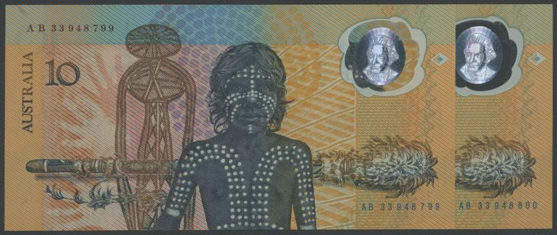 Box containing paper including $1 (25) with 1982 Johnston/Stone R78 run of ten, and Last Prefix 'DPS' (EF); $2 (7) with 1972 Phillips/Wheeler 'COMMONWEALTH' R84; $5 1972 Phillips/Wheeler R204 light teller-bend; $10 1972 Phillips/Wheeler; polymers include $5 (3); $10 1988 Johnston/Fraser Bicentenary R310 dated folder x2, 1st Issue x3, and Reissue x2, 1993 Fraser/Evans; and $20 1972 Phillips/Wheeler 'COMMONWEALTH' R404 (VF), 1994 Fraser/Evans; condition variable, all polymers Unc.