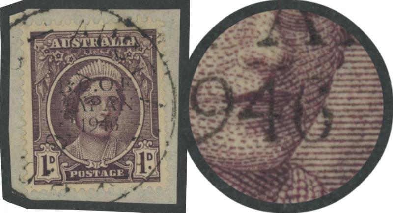 PENNY WITH OVERPRINT IN BLACK: 1d in Black with '6' in Wrong (Antique) Font ACSC J2PP(2)Ah tied to small piece by 'AUST ARMY PO/ 241. ' cds used at BCOF HQ at Kure, Cat $750+. (Image1)